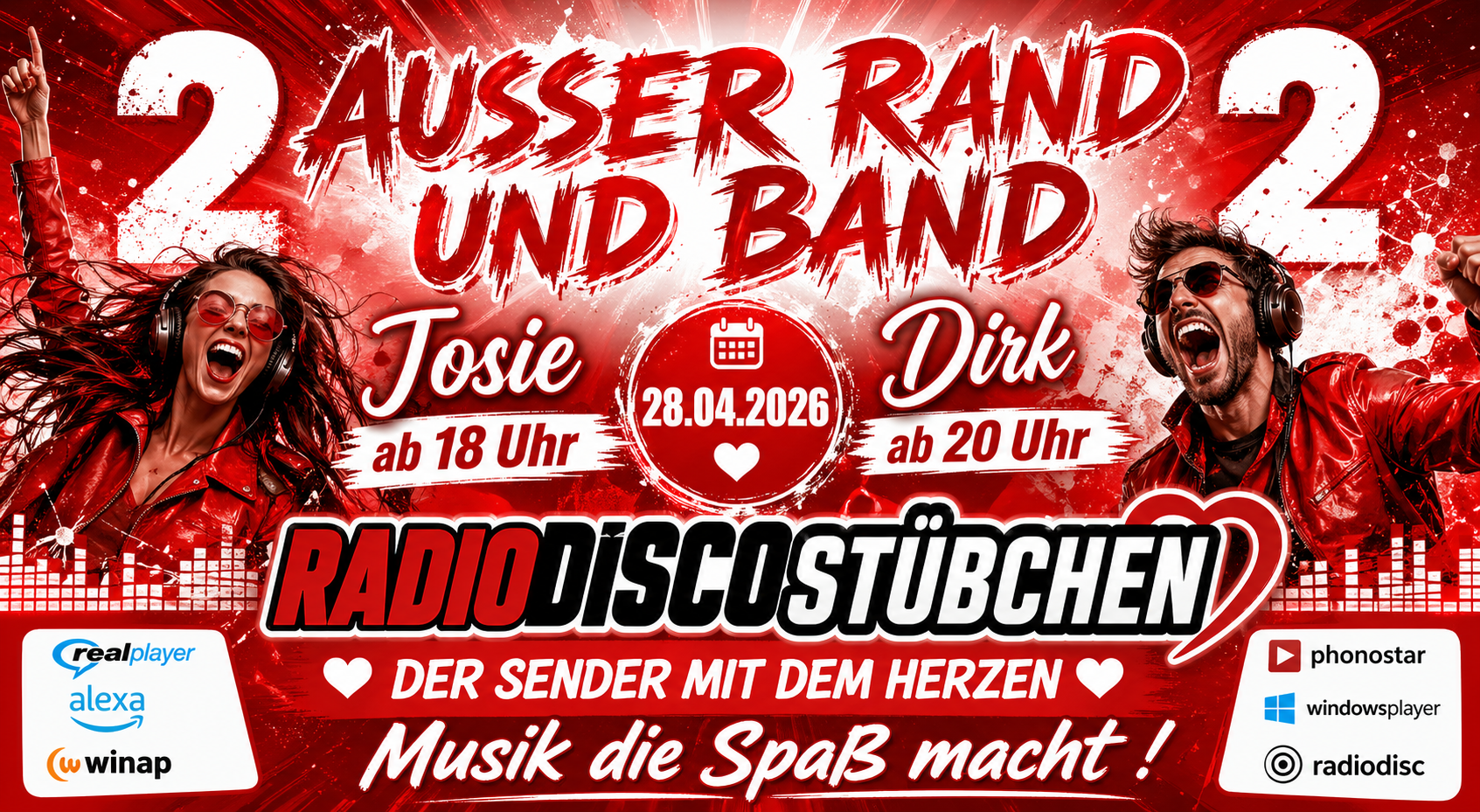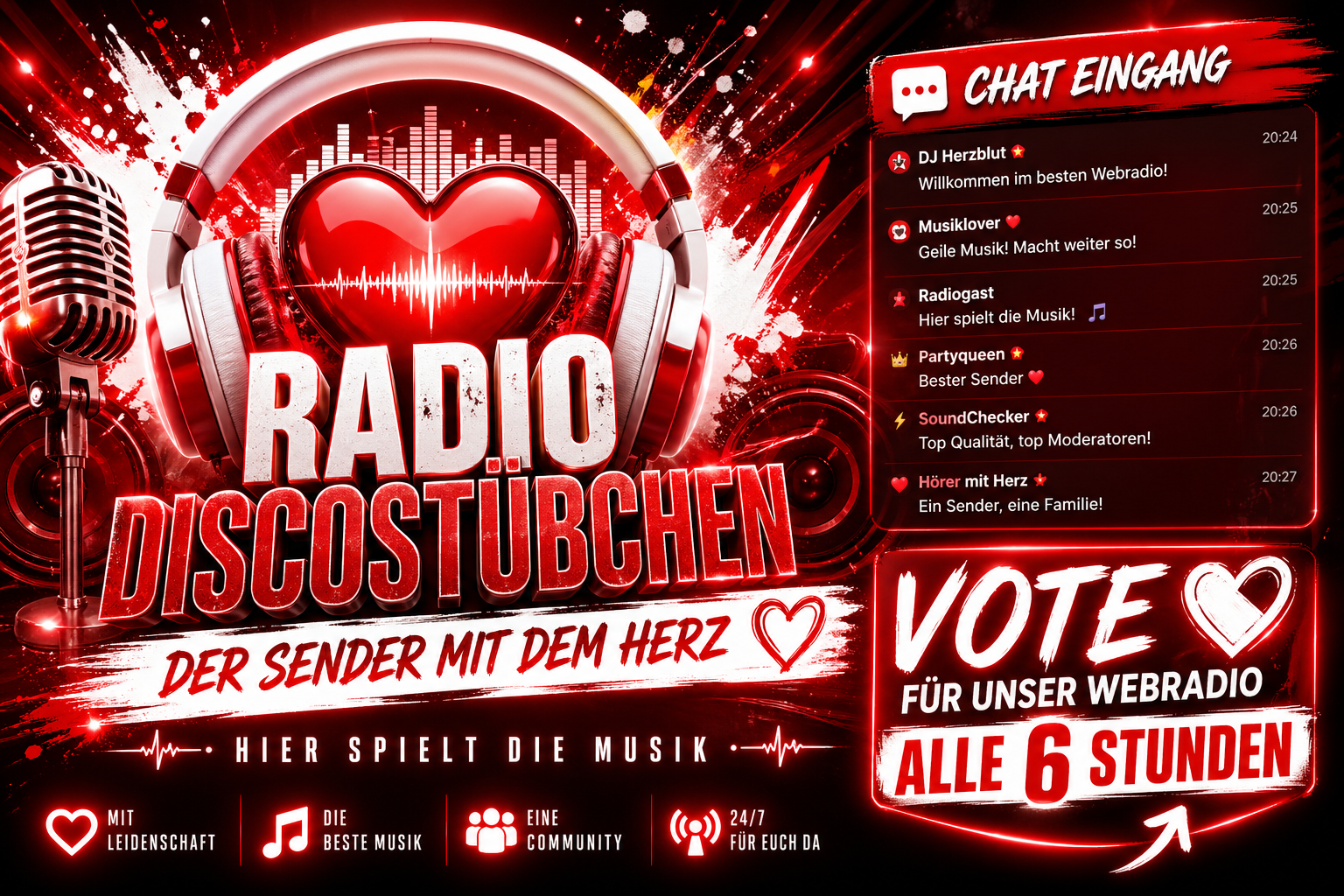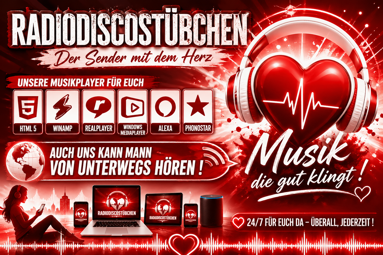 (28.04.2022 19:50):bin hier durch zufal auf das radio gestoßen und muss sagen klasse musik und radioChristian Haas(16.03.2022 20:06):Hallo bin heute das erste Mal bei euch. Bin bis jetzt zufrieden macht weiter so. Schöne Grüße an Holger